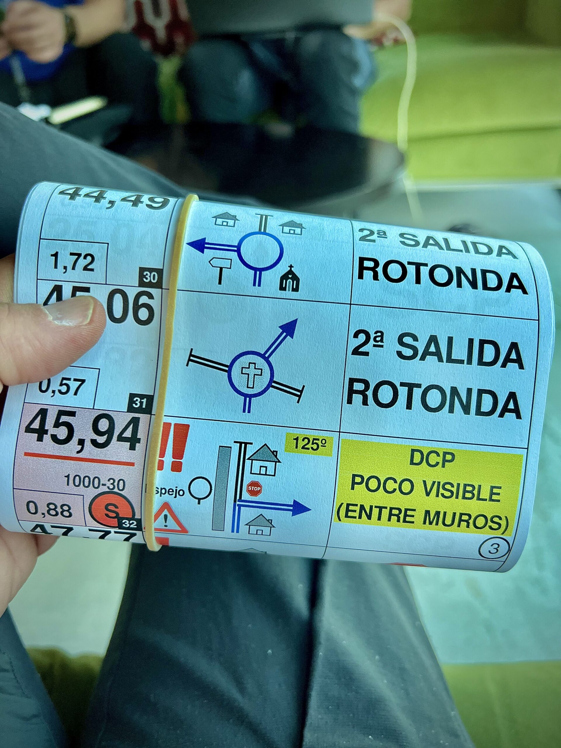 Allí recogimos las credenciales y, lo más importante, el rollo de roadbook que nos hará de navegador por todas las etapas. Es el segundo año, además, que recibimos las etapas en un roadbook digital pero a nosotros nos gusta también llevarlo en papel para controlarlo todo mejor. Luego es más trabajo porque tienes que ir pasando cada viñeta en el porta roadbook de papel como en el digital del móvil. También en esa tarde de llegada escuchamos atentos la bienvenida y el briefing que la organización da a todos los que obligatoriamente debemos estar allí.