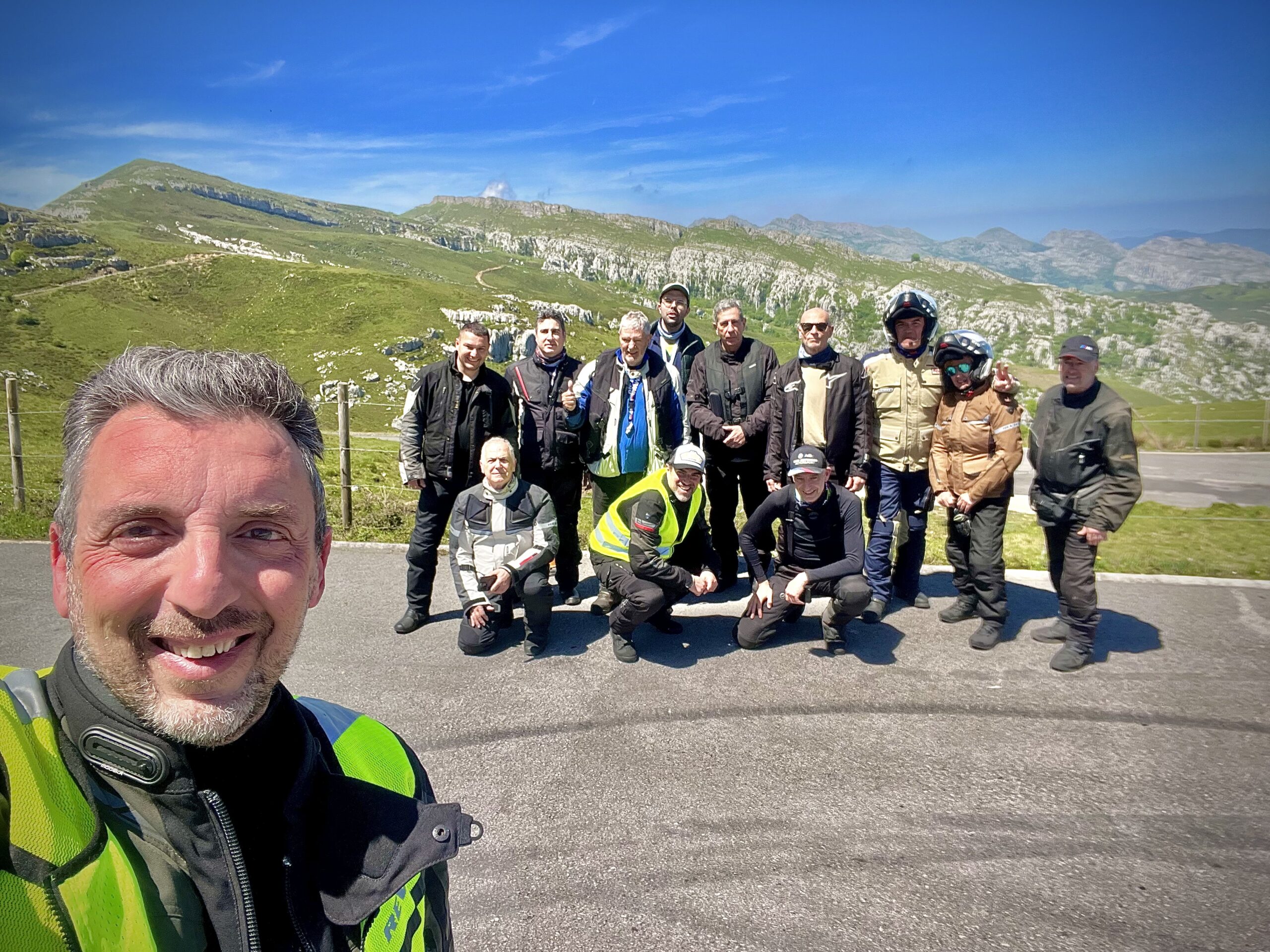 Las etapas, por no extenderme mucho, fueron increíbles también esta vez. La parte portuguesa que la imaginaba más cercana al Duero nos llevó por pueblos típicos del norte del país hasta Zamora donde la ciudad nos recibió en su Plaza Mayor con todos los honores. De allí hasta Cangas de Onís entrábamos en la preciosa Asturias y como no podía ser menos, los paisajes y las gentes hacían que los kilómetros no pesasen en el cuerpo de los moteros. La tercera etapa comenzaba con un guiño a la Virgen de Covadonga donde teníamos el primer punto de control nos llevaba cruzando Asturias por los Picos de Europa hasta Cantabria y sus Valles Pasiegos. Así, desde luego, no hay motivos para no encontrar carreteras y paisajes maravillosos. La parada para comer una espléndida y gustosa fabada fue en Cabrojo, cerca de Cabezón de la Sal -maravillosos los nombres de los pueblos por los que pasamos- donde la degustamos sentados junto a uno de los más afamados motoviajeros (si no el que más) D. Gustavo Cuervo. Un placer compartir un ratito con él.